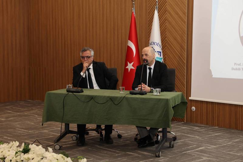 14 Mart Tıp Bayramı kapsamında gerçekleştirilen söyleşiye ALKÜ Rektör Yardımcıları Prof. Dr. Mehmet KILIÇ ve Prof. Dr. Işık BAYRAKTAR, Genel Sekreter Hüseyin ER, Fakültemiz Dekanı Prof. Dr. Ali Kemal ERENLER, Dekan Yardımcılarımız Prof. Dr. Jale SELLİ ve Prof. Dr. Mehmet Yalçın GÜNAL, fakülte dekanları, öğretim üyelerimiz, öğrencilerimiz ve idari personellerimiz katıldı. Programa konuşmacı olarak Beyin ve Sinir Cerrahisi Anabilim Dalı Başkanı Prof. Dr. Mehmet SEÇER ile Dahili Tıp Bilimleri Bölüm Başkanı Şakir Özgür KEŞKEK katıldı. Değerli hocalarımız bilgi ve tecrübelerini öğrencilerimizle paylaşarak mesleki deneyimlerine ilişkin değerlendirmelerde bulundu. Programın soru-cevap bölümünde öğrencilerimizin sorularını yanıtlayan konuşmacılar, tıp eğitimi ve hekimlik mesleğine dair önemli tavsiyelerde bulundu.
