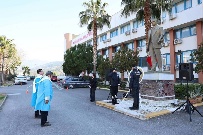 Fakültemizde 14 Mart Tıp Bayramı dolayısıyla tören ve söyleşi düzenlendi. Programların ilki çelenk sunma töreniyle başladı. İktisadi, İdari ve Sosyal Bilimler Fakültesi binası önündeki Atatürk büstüne 14 Mart Tıp Bayramı dolayısıyla çelenk sunumu gerçekleşti. ALKÜ Rektör Yardımcısı Prof. Dr. Mehmet KILIÇ ve Fakültemiz Dekanı Prof. Dr. Ali Kemal ERENLER tarafından çelenk sunuldu. Programda konuşan Dekanımız Prof. Dr. Ali Kemal ERENLER, 14 Mart Tıp Bayramını kutladı.